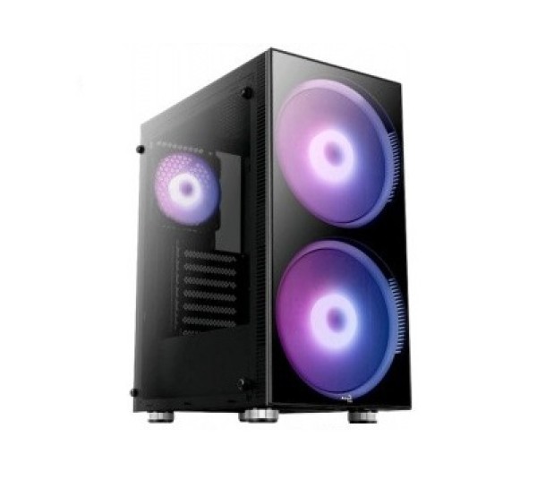 Среднеразмерная геймерская платформа с эффектной ARGB-подсветкой, которая понравиться любителям яркого модинга. За передней панелью, которая выполнена из каленного стекла, разместились 2 вентилятора с крыльчаткой 200 мм, а еще один кулер, но с лопастями 120 мм, смонтирован сзади. Шасси поддерживает установку материнской платы следующих типоразмеров: ATX, Micro-ATX и Mini-ITX. Предельная высота процессорного кулера составляет 164 мм, а допустимая длина видеокарты может достигать 325 мм — все это позволяет установить внутри достаточно мощную начинку. Корпус Aerocool Python получил двухсекционное устройство, нижний отсек предназначен для монтажа ATX-совместимого блока питания и стойки HDD. Все вентиляторы оснащены адаптивной RGB-подсветкой на 16 млн оттенков, при этом ее можно синхронизировать с любыми компьютерными гаджетами, которые поддерживают технологию ARGB. Дополнительно для управления подсветкой предусмотрен специальный переключатель, который вынесен на панель интерфейсов, также ее можно настраивать программно, но для этого нужно использовать современную материнскую плату, с разъемом ARGB. В общей же сложности хаб вентиляторов этой модели рассчитан на 6 портов. На верхней панели предусмотрено несколько креплений для установки 120-миллиметровых крыльчаток, а если необходимо, на передней и задней панелях можно задействовать радиаторы жидкостного охлаждения.
