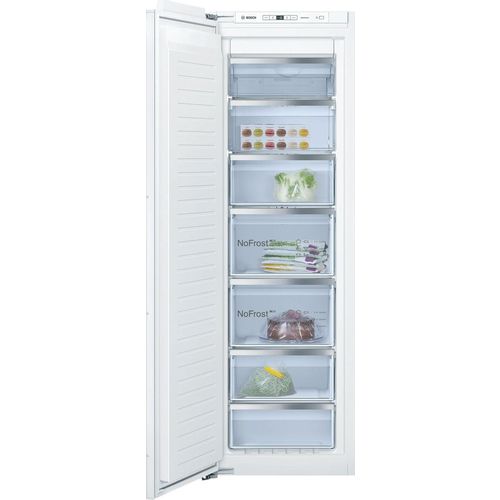 Классика немецкой морозильной техники среднего ценового сегмента представлена на рынке встраиваемой моделью большого объема Bosch GIN 81AE20R, которая оснащена системой автоматического размораживания No Frost. Генератором холода в устройстве является компрессор нового поколения Bosch VarioInverter, обладающий повышенной надежностью, благодаря чему производитель дает на него 10 лет гарантии. Компрессор с передовой инверторной технологией обладает низким уровнем шума 36 дБ и обеспечивает высокую мощность суточной заморозки, охлаждая за это время 20 кг свежих продуктов до -24 °C. Этот результат достигается с помощью встроенной функции автоматической суперзаморозки SuperFreezing, которая отключается при достижении нужной температуры. В дальнейшем за поддержание оптимальных условий хранения отвечают датчики FreshSense, контролирующие и корректирующие температурный режим.