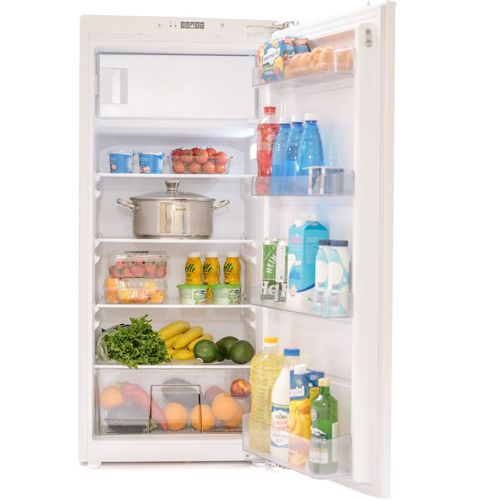 Встраиваемый холодильник SCANDILUX RBI162 Встраиваемый холодильник белого цвета SCANDILUX RBI162 представлен в компактном дизайне, благодаря чему легко поместится на небольшой кухне и будет удобен для встраивания в любом помещении.Холодильная камера наполнена тремя сверхпрочными стеклянными полками, ящиком для овощей и фруктов и двумя ящиками на дверц. Размораживание холодильника производится автоматически, в холодильнике предусмотрена капельная система, на внутренних стенках обеих камер не будет образов...
