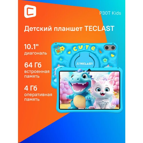 10.1" Детский планшет TECLAST P30T Kids 4/64 GB A523 Wi-Fi, 1280 x 800, Android 14, синий