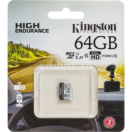Карта памяти microSDXC UHS-I U1 Kingston High Endurance 64 ГБ, 95 МБ/с, Class 10, SDCE/64GB, 1 шт., без адаптера