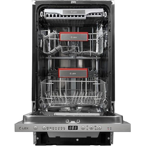 Доступная полновстраиваемая посудомоечная машина с узким корпусом, конденсационной сушкой и возможностью подключения к внешнему источнику горячего водоснабжения. Отличается повышенной энергоэффективностью класса А++, экономным потреблением воды (всего 9 л в цикле программы ЕСО) и компактными габаритными размерами которые позволяют использовать эту машину в кухнях ограниченной площади. Позиционируется как модель базовой ценовой категории, предназначенная для обслуживания бытовых потребностей семей численностью 2-5 человек. Простая и интуитивно понятная система управления с панелью кнопочных переключателей поддерживает 7 различных программы мойки (интенсивная, экономная, ежедневная, быстрая, часовая, деликатная для прозрачного стекла, предварительная). Также имеется полезный режим работы с половинной загрузкой. Рабочая камера посудомоечной машины Lex PM 4573 изготовлена из высоколегированной нержавеющей стали, которая применяется в качестве материала профессионального кухонного оборудования. Удобная двухъярусная система загрузки (два уровня корзин + короб для столовых приборов) позволяет разместить до 11 полных комплектов посуды. Положение верхней корзины можно изменить (поднять на уровень выше), что освобождает место для таких габаритных предметов как сковороды, кастрюли, сотейники или детали бытовых кухонных комбайнов. Машина оборудован защитой от протечек и может работать с моющими средствами 3-в-1.