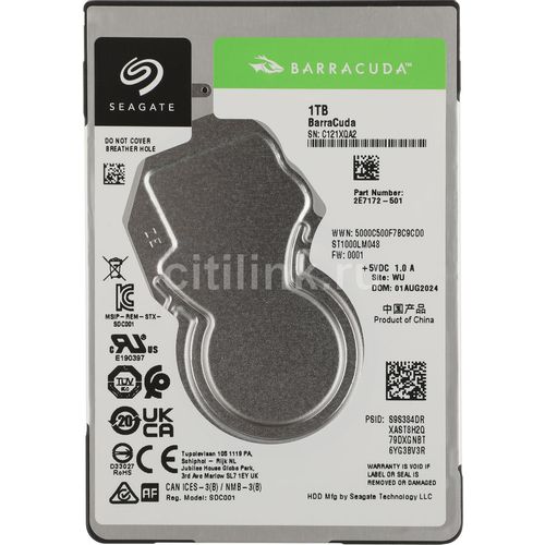 Малогабаритный и экономичный внутренний жесткий диск форм-фактора 2.5″ из семейства мобильных HDD-накопителей BarraCuda Compute 2016 года. Эта линейка включает в себя 6 моделей объемом от 500 Гб до 5 Тб, которые предназначены для решения самого широкого круга задач. Использует технологию ″черепичной″ магнитной записи (SMR), увеличивающую емкость. Позиционируется как доступный продукт средней ценовой категории, ориентированный на использование в ноутбуках, мобильных HDD-кейсах, малогабаритных настольных ПК (All-in-one PC) и HTPC. Представляет собой надежное решение для хранения данных рабочих проектов, видео/аудиоконтента, фотографий. Жесткий диск Seagate BarraCuda Compute 2.5″ ST1000LM048 может использоваться в качестве основного (системного) накопителя или работать в паре с более производительным SSD-диском. Благодаря скромным габаритным размерам (высота всего 7 мм) и стандартному интерфейсу SATA3, может использоваться для модернизации существующих мобильных компьютеров. Оборудован производительным контроллером, работающим в связке с буфером увеличенного объема (128 Мб), который улучшает производительность за счет кэширования. Скорость вращения пластин составляет 5400 об/мин, что самым положительным образом сказывается на тепловыделении. Максимальная потребляемая мощность не превышает 1,7 Вт, а малый стартовый ток дает возможность при необходимости полноценно запитать диск от USB-порта.